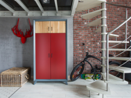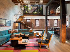 Обробка приміщення перегукується з обробкою дерев’яних сходів і перилами