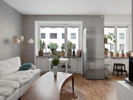 Скандинавський стиль добре виглядає в оформленні малогабаритних однокімнатних квартир