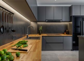 Alternatifnya: Pilih permukaan yang mudah dibersihkan seperti papan vinil mewah (LVP), laminasi, atau ubin. Bahan-bahan ini tidak akan menyerap tumpahan dan dapat dibersihkan dengan sedikit usaha.
