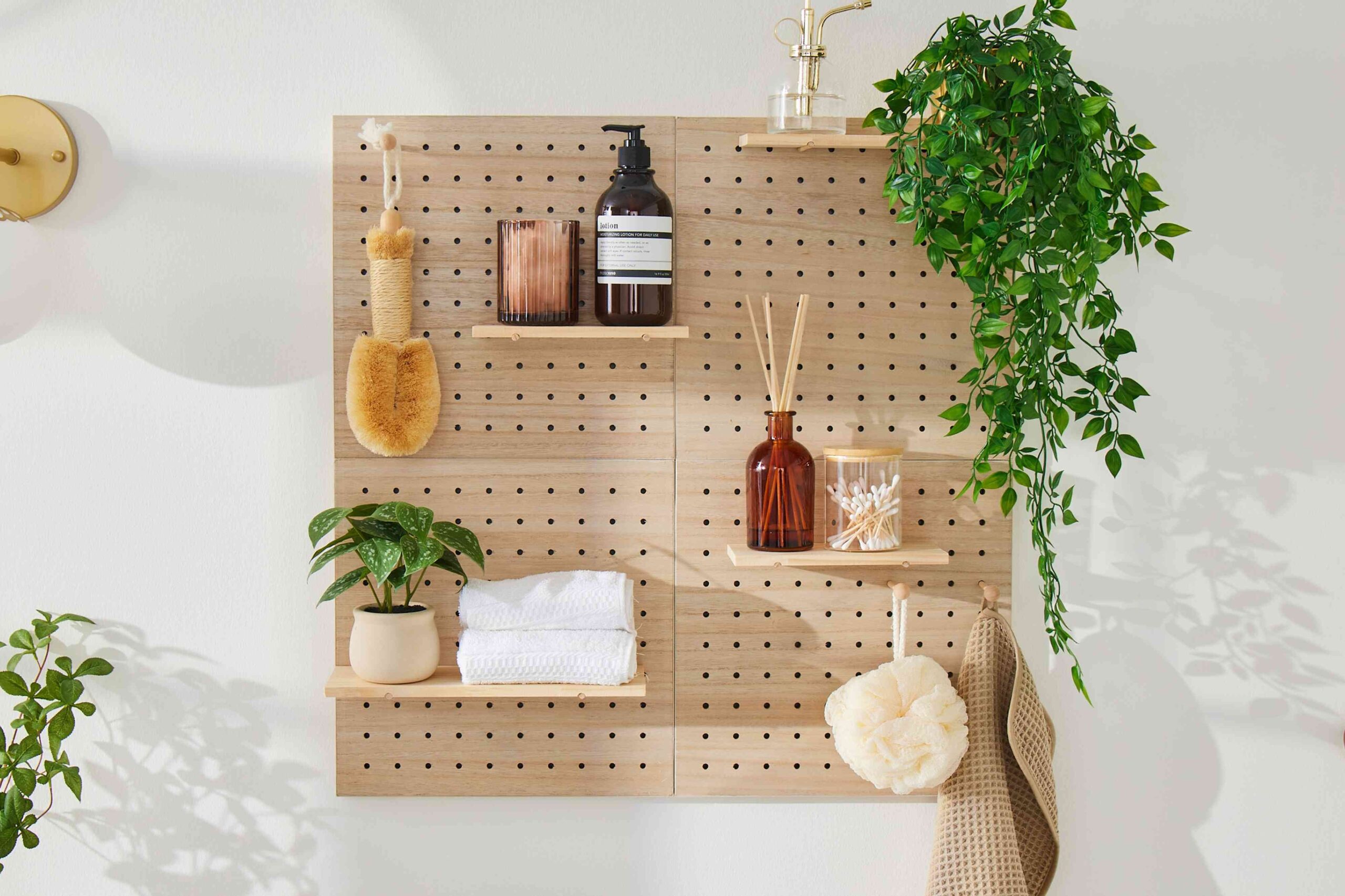 Перфоровані стіни поєднують в собі організацію та естетику. Встановивши дошку 1,2 на 2,4 метри на стовпи 5 на 5 см, відшліфувавши, пофарбувавши та додавши фурнітуру, ви отримаєте універсальний простір для столів, офісів або пралень.