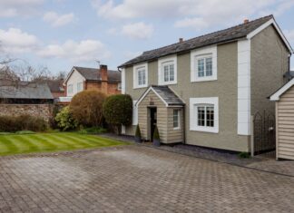 Класична вітальня з дерев’яним і пластиковим карнизом